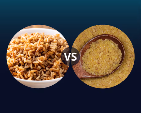 Fehérjetartalom: A bulgur 3,1g fehérjét tartalmaz 100g-ban, míg a barna rizs 2,6g-ot. Bár a különbség kicsi, a bulgur jobb fehérje-kalória aránya miatt hatékonyabb fogyáshoz.