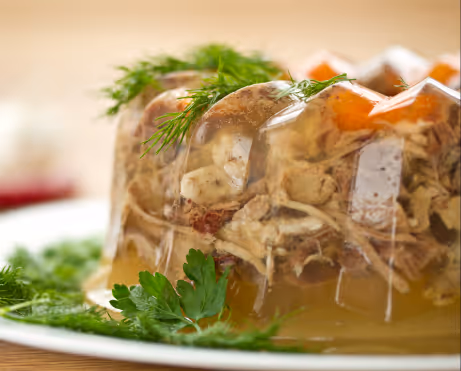 • 15. lépés: Hagyd teljesen kihűlni szobahőmérsékleten, majd tedd hűtőbe és hagyd megdermedni legalább 6 órát, de ideális esetben egész éjszakára. A kocsonya készen áll, amikor teljesen kemény és zselés állagú.